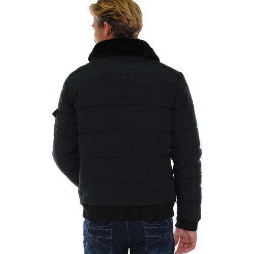 French Denim Blouson noir col fourrure synth?thique Manteaux
