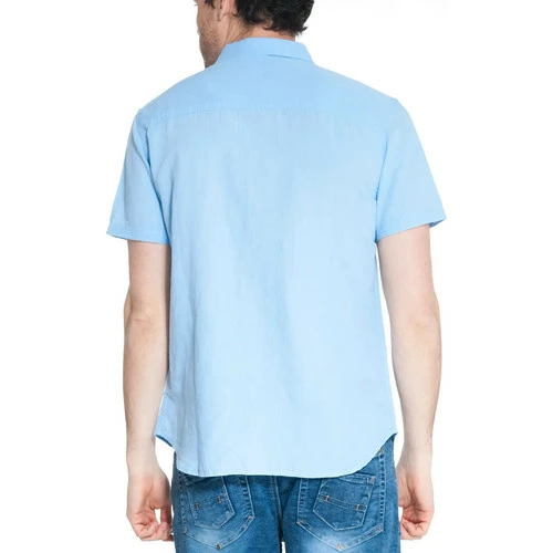 French Denim Chemise manche courte en lin unie bleu Chemises