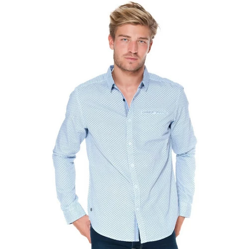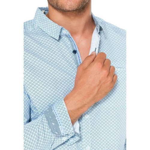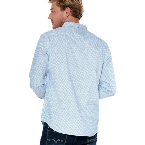 INFORMATIONS PRODUIT: Chic et styl? on craque pour la chemise homme manches longues et son micro motif g?om?trique imprim? On adore les finitions au col , sous la patte de boutonnage, et sur l’envers des bas de manches. Coup de coeur sur le micro motif g?om?trique dans les tons bleus. Mati?re principale : 100% coton. Taille: Prendre votre taille habituelle ?