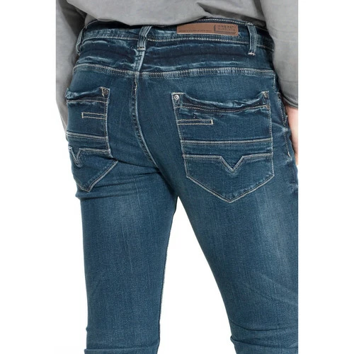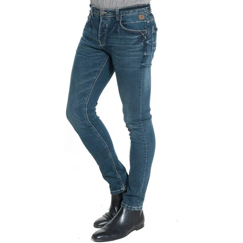 INFORMATIONS PRODUIT: Jeans bleu Effet us? Coupe slim 5 poches Fermeture boutons Ultra confort gr?ce ? l’ajout d’?lasthanne Mati?re principale : 98% coton, 2% ?lasthanne Taille: Prendre votre taille habituelle R?F?RENCE : RM5408-Bl