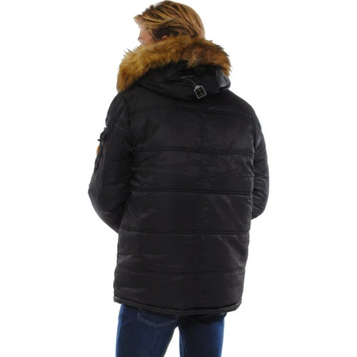 French Denim Parka noire ? capuche fourrure synth?tique Manteaux