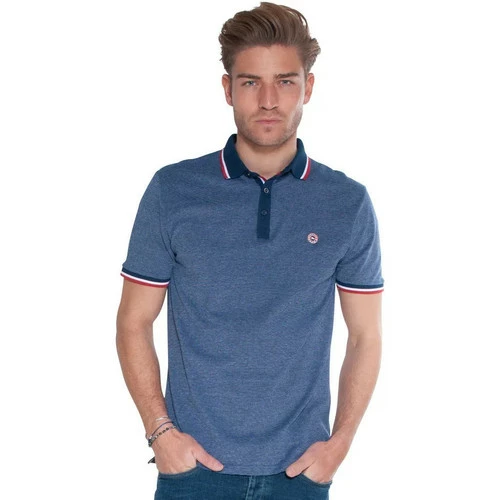 French Denim Polo marine jacquard d?tails tricolores T-shirts & Polos