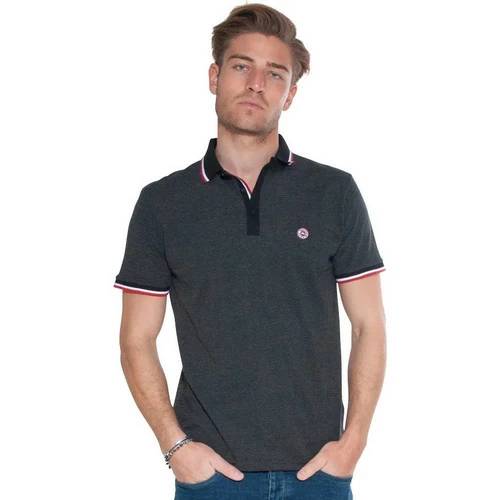 French Denim Polo noir jacquard d?tails tricolores T-shirts & Polos