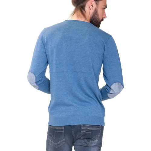 French Denim Pull col V chin? ? coudi?res Pulls & Gilets