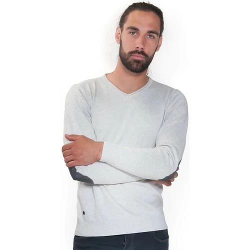 French Denim Pull col V chin? ? coudi?res Pulls & Gilets