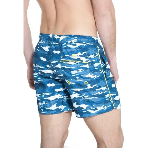 INFORMATIONS PRODUIT: Maillot de bain camoufl? Bleu . Taille ?lastiqu?e et fermeture surfeur sur le devant. Poches coutures sur les c?t?s et poche passepoil?e au dos. Mati?re principale :Taslan 100% Polyamide Mati?re secondaire : 100%Polyamide (doublure en mesh) Taille: Prendre votre taille habituelle ?