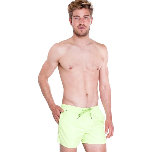 INFORMATIONS PRODUIT: Maillot de bain vert uni. Taille ?lastiqu?e et fermeture surfeur sur le devant. Poches sur les c?t?s et plaqu?es au dos. Mati?re principale :Taslan 100% Polyamide Mati?re secondaire : 100%Polyamide (doublure en mesh) Taille: Prendre votre taille habituelle ?