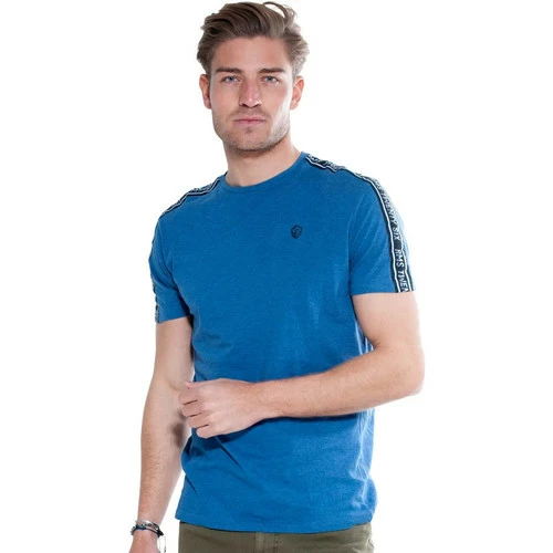 INFORMATIONS PRODUIT Indispensable ? tout dressing masculin, craquez pour notre T-Shirt manches courtes col rond. Avec une Bande tiss?e sport sur les ?paules et une Broderie signature contrast?e sur la poitrine. Il sera votre alli? mode pour chiller avec style. ? Mati?re principale: Jersey cross dyed 60% coton 40% polyester. INFO TAILLE : Prendre votre taille habituelle. R?f?rence : RM90710-Bl