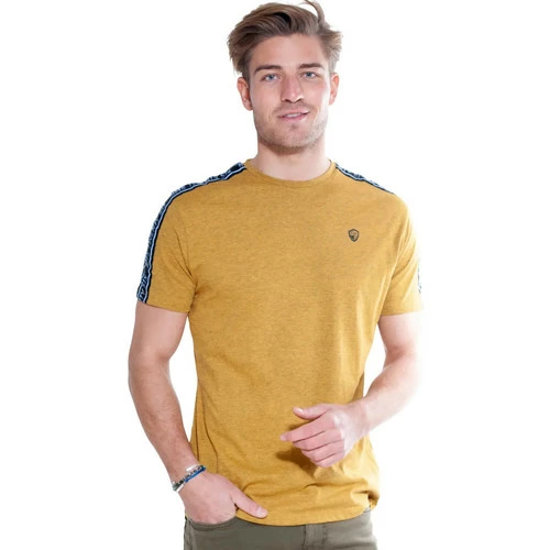 INFORMATIONS PRODUIT Indispensable ? tout dressing masculin, craquez pour notre T-Shirt manches courtes col rond. Avec une Bande tiss?e sport sur les ?paules et une Broderie signature contrast?e sur la poitrine. Il sera votre alli? mode pour chiller avec style. ? Mati?re principale: Jersey cross dyed 60% coton 40% polyester. INFO TAILLE : Prendre votre taille habituelle. R?f?rence : RM90710-Mou