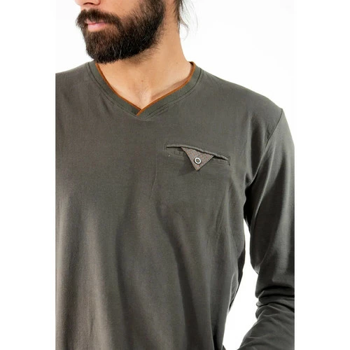 INFORMATIONS PRODUIT Chic et d?finitivement mode, on adore ce T-Shirt manches longues uni et son col V en Rib ray?. On craque pour sa finition poche passepoil?e poitrine et son empi?cement en popeline imprim?e. Mati?re en jersey stretch pour un confort absolu. ? Mati?re principale : 95% Coton, 5% ?lasthanne Taille: Prendre votre taille habituelle R?f?rence : RM90913-K Existe en noir