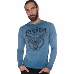 French Denim T-Shirt d?lav? imprim? Motor T-shirts & Polos