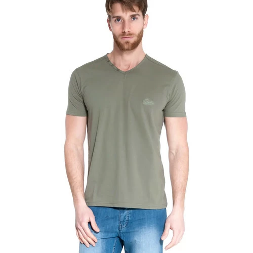 French Denim T-Shirt manches courtes col V kaki T-shirts & Polos