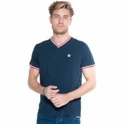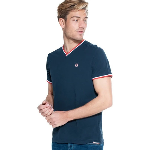 INFORMATIONS PRODUIT T-Shirt manches courtes col V Bande tricolore au col et aux bas de manches. Cocarde tricolore sur la poitrine Touch? peau de p?che Mati?re principale: 95% coton, 5% Elasthane INFO TAILLE : Prendre votre taille habituelle. R?f?rence : RM90682-M