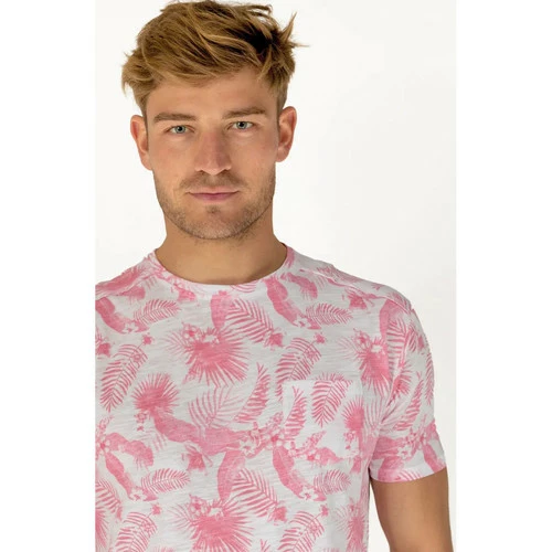INFORMATIONS PRODUIT: Craquez pour notre nouveau Tee shirt homme manches courtes et son imprim? tropical tendance. On adore son motif effet d?lav? sur mati?re jersey slub qui apporte beaucoup de modernit?. Un indispensable mode dans son dressing denim ! Info mati?re : Le jersey slub est un jersey flamm?. Il a un aspect textur? discret qui lui donne un look original gr?ce ? un tissage irr?gulier du fil. Le rendu est plus brut qu’un jersey classique. Chic, et mode, c’est un tissu facile ? porter puisqu’il s’agit d’un tissu jersey. ? combiner avec un jean pour un look denim, ou encore un chino marine, bleu, camel ou encorebordeaux pour une tenue plus styl?e. Avec un pantalon ou encore un bermuda, il sera votre atout mode indispensable de l’?t? ! Tee Shirt manches courtes, col rond. Poche plaqu?e poitrine. Coupe r?gular. ? Mati?re principale : jersey slub 100% coton Taille: Prendre votre taille habituelle R?f?rence: RM90970-Rouge ?
