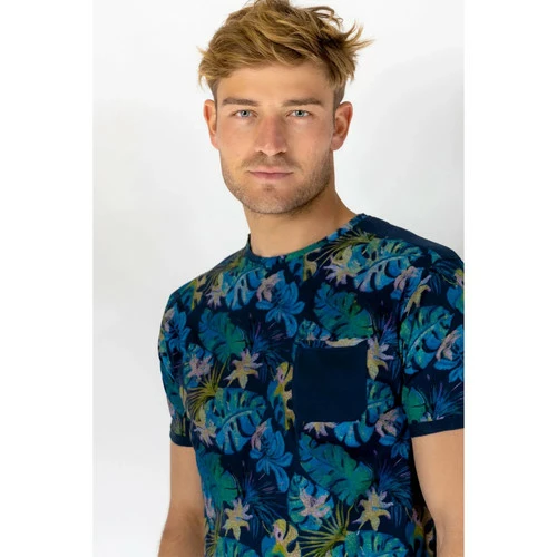 INFORMATIONS PRODUIT: Craquez pour notre nouveau Tee shirt homme manches courtes et son imprim? jungle tendance. On adore son motif tropical , parfait pour le plein ?t?. ? combiner avec un jean pour un look casual, ou encore un chino kaki pour une tenue plus styl?e. Avec un pantalon ou encore un bermuda, il sera votre atout mode indispensable de l’?t? ! Tee Shirt manches courtes, col rond. Poche unie plaqu?e poitrine. empi?cements ?paules et bas de manches en jersey uni marine. ?tiquette tiss?e logotyp?e. Coupe r?gular. ? Mati?re principale : Jersey 100% Coton Taille: Prendre votre taille habituelle R?f?rence: RM90964-Bleu ?