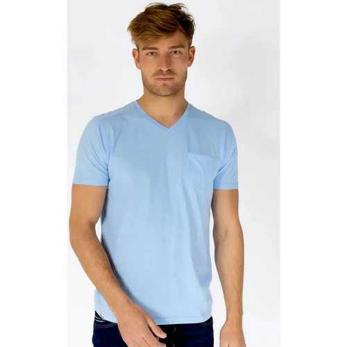 French Denim Tee Shirt Uni Col V T-shirts & Polos